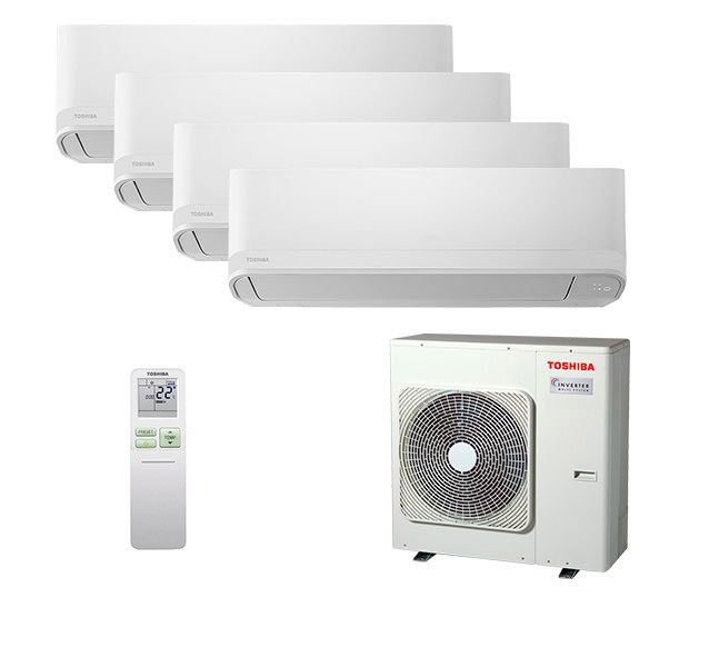 Самый тихая в своем классе мульти сплит система Toshiba RAS-B07CKVG-EE x 2 / RAS-2M14G3AVG-E с уровнем шума всего 20 дБ(А). Такой комплект подойдет для 2 комнат общей площадью до 40 кв.м. Настраивать температуру в каждой из комнат можно индивидуально с помощью беспроводного пульта, который поставляет вместе с настенным блоком.