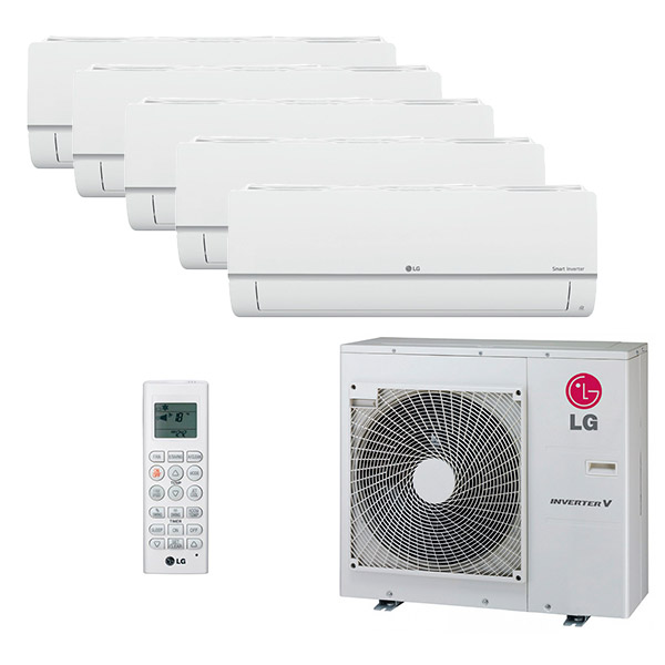 Классическая мульти сплит-система на 5 блоков LG PM07SP x 5 / MU5M30 используется для монтажа в помещениях на 21+21+21+21+21 кв.м. Работает совместно с одним внешним блоком из серии Multi F inverter. В комплекте к каждому настенному кондиционеру идет свой пульт управления. Благодаря этому пользователь может устанавливать нужную ему температуру в каждой комнате отдельно.