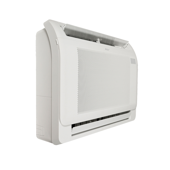 Особенность установки напольных блоков в том, что в отличие от настенных, они размещаются на небольшой высоте от пола и достаточно просто крепятся на стене. Имеют компактный дизайн и беспроводной пульт в комплекте. В этой серии есть также возможность подключения дополнительного Wi-Fi модуля с голосовым управление с Алисой. Для стандартной очистки от пыли в консольном блоке MDV MDFFI-12HRFN8 есть воздушный фильтр.